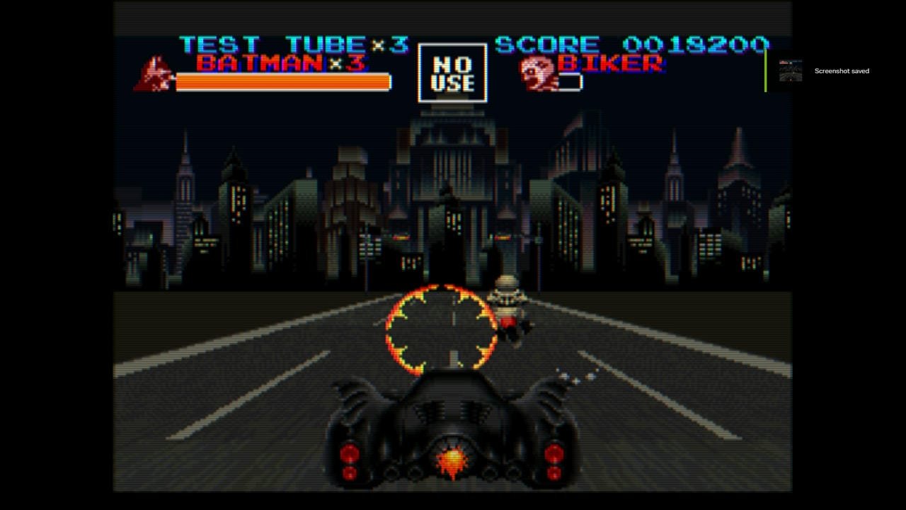 هناك مرحلة مختلفة واحدة فقط، خارج القتال ستقود سيارة باتمان، ستحركها للأيمن أو الأيسر وتتخطى العواقب وتصيب الأعداء، وهذا كل شيء، لم تحتج مني المرحلة سوى القليل من التركيز، اللعبة بما فيها هذه المرحلة ليست صعبة إطلاقًا، باستثناء الزعماء، ضرباتهم توجع وتفرغ عداد الحياة سريعًا، باتمان يمتلك شريط حياة ونقاط حياة أيضًا، ما يعني أنه إن أفرغته ستعود للعب مباشرة، لكن إنْ استخدمت كل نقاط الحياة، فهنا ستعيد المرحلة من منقطة أبعد وتفقد واحدة من نقاط المواصلة، افقدها كاملة وستكون تلك نهاية اللعبة وعليك البدء من جديد، لذا حاول ألا تتهور أثناء قتال الأعداء العاديين وتأكد ألا تهاجم الزعماء قبل أن تعرف حركاتهم.