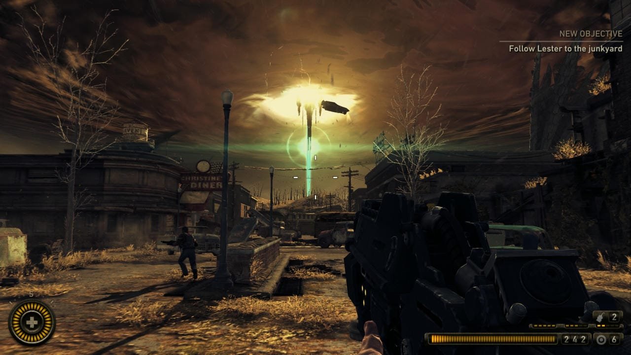الأماكن ليست الشيء الوحيد الذي يختلف، الأجواء تتغير، تتحوّل اللعبة أحيانًا لما يُشبه لعب رعب بمجال رؤية ضيق واستخدام أكبر للكشاف، أو لعبة حرب تقليدية تسمع فيها الصراخ والأوامر والاستنجاد، لكنّها تفرض عضلاتها عندما تُركز أكثر على غزو الكائنات الفضائية، السماء التي تملؤها مركبات العدو الضخمة، الانفجارات والآلات الكبيرة وحتّى قتال الأعداء مع البشر عن بعيد، تجعلك تشعر بنهاية العالم وبتأثيرك الصغير وسط كل هذا، قد تمضي نصف ساعة تقاتل جموعًا من الأعداء وعدوًا كبيرًا، وتُعاني للبقاء حيًا، لتجد أن ما تقاتل في البعيد، مئات الأضعاف.